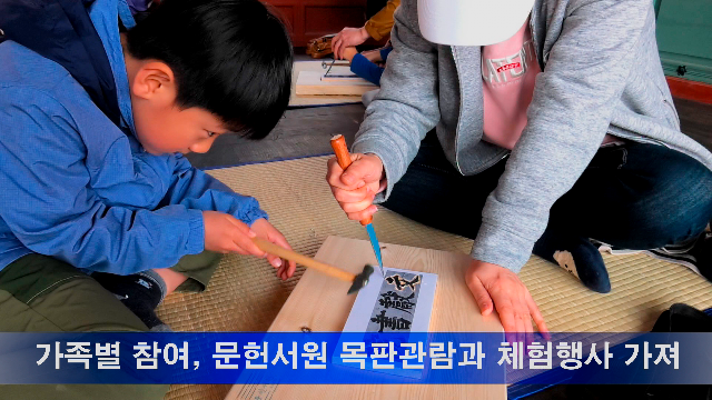 (뉴스스토리=미디어)서천 문헌서원 '가족 목판 만들기 체험해요' ⓒ 뉴스스토리(http://www.news-story.co.kr) ‘온고지신 문헌서원’ 프로그램...선비인문학, 청년유도회 등 서천 문헌서원(기벌포전통문화학교)에서 지난 22일 주말 가족들이 참여한 ‘목판 만들기’체험 프로그램이 진행됐다. 이번 ‘목판 만들기’ 체험행사는 2017년 문화재청 지원사업으로 받.. '소통' 실시간 뉴스 2017.04.24