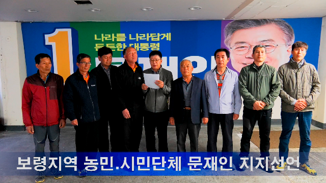 (뉴스스토리=미디어)보령지역 농민.시민단체 문재인 후보 지지선언 ⓒ 뉴스스토리(http://www.news-story.co.kr) 한편, 보령지역에서는 지난 23일 한전산업개발 노동조합 서해지부에서 문재인 후보 지지선언에 이어 이날 두 번째 공식 지지선언이다. 28일 오후 7시 보령시농민단체 오무광 상임대표 및 보령농민회 이정학 회장 등 37명과 보령평통사 권기석 대표, 민.. '소통' 실시간 뉴스 2017.04.28